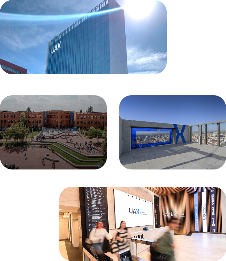 UAX es una universidad privada en Madrid con un enfoque muy aplicado: aprender haciendo, con metodologías prácticas y una experiencia pensada para prepararte para el mundo profesional. Es una opción especialmente buena si valoras una formación clara, moderna y orientada a resultados en un entorno universitario dinámico.